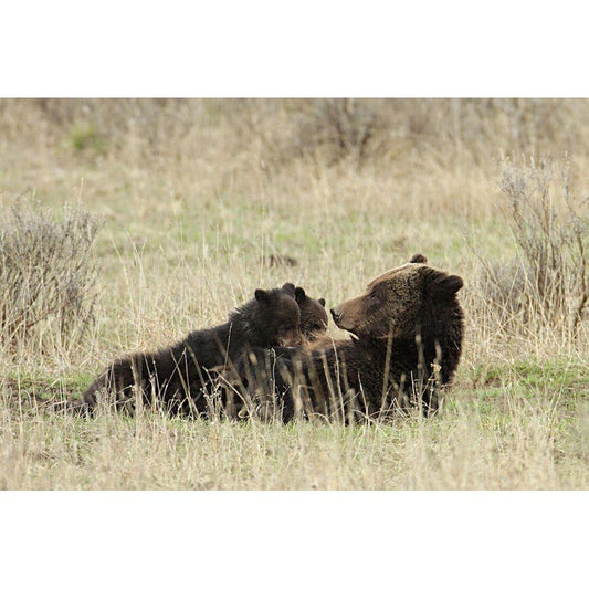 Grizzly Cubs, Yellowstone National Park Gold Ornate Wood Framed Art Print with Double Matting by Peaco, Jim