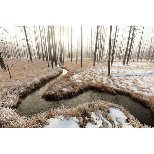 Foggy Morning at Tangled Creek, Yellowstone National Park Gold Ornate Wood Framed Art Print with Double Matting by The Yellowstone Collection