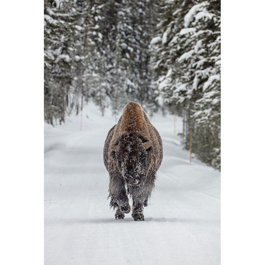 Frosty Bull Bison near Fishing Bridge, Yellowstone National Park Gold Ornate Wood Framed Art Print with Double Matting by The Yellowstone Collection