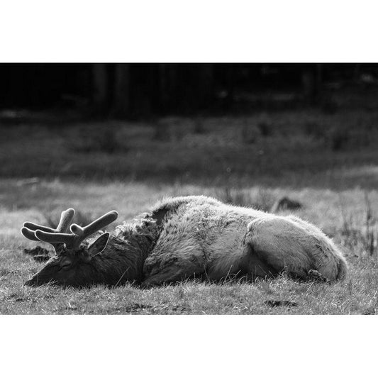Bull Elk Sleeping in Spring, Yellowstone National Park Gold Ornate Wood Framed Art Print with Double Matting by Herbert, Neal