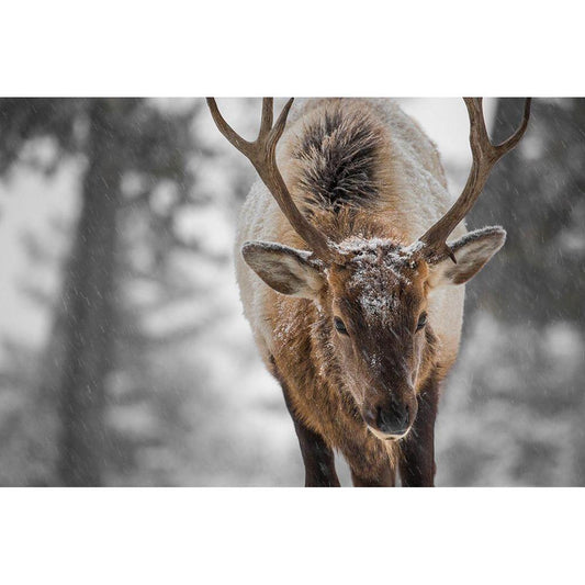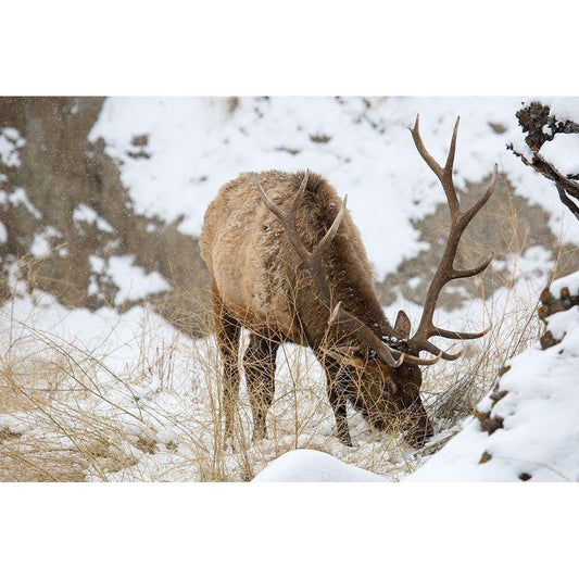 Bull Elk Searches for Food, Yellowstone National Park Gold Ornate Wood Framed Art Print with Double Matting by The Yellowstone Collection