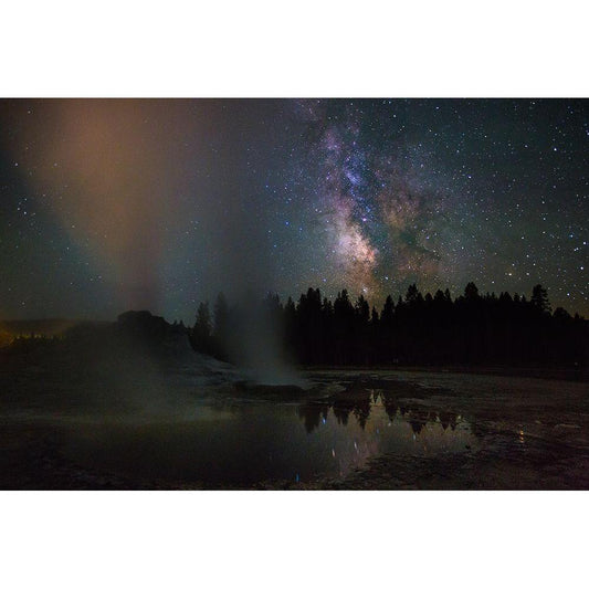 Castle Geyser and Milky Way, Yellowstone National Park Gold Ornate Wood Framed Art Print with Double Matting by The Yellowstone Collection
