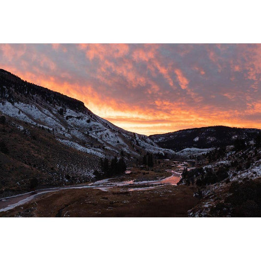 Winter Sunset in Lamar Valley, Yellowstone National Park Gold Ornate Wood Framed Art Print with Double Matting by The Yellowstone Collection