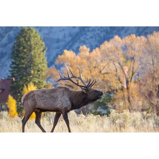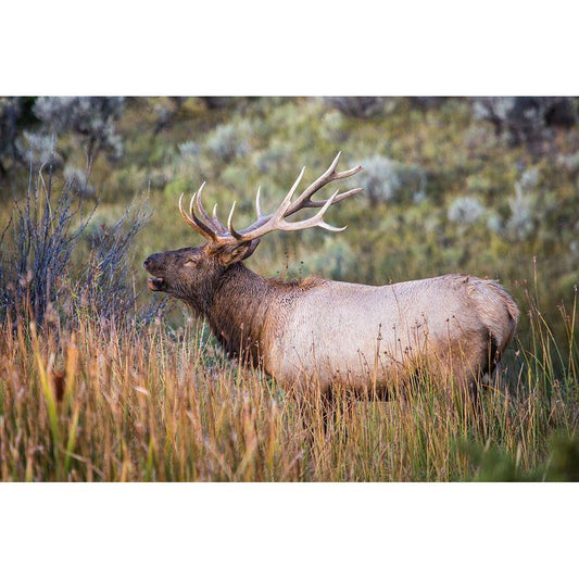 Bull Elk Bugling, Mammoth Hot Springs, Yellowstone National Park Gold Ornate Wood Framed Art Print with Double Matting by The Yellowstone Collection
