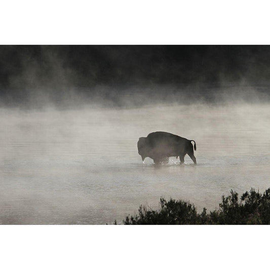 Bull Bison crossing Yellowstone River, Yellowstone National Park Gold Ornate Wood Framed Art Print with Double Matting by Peaco, Jim