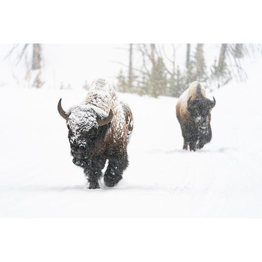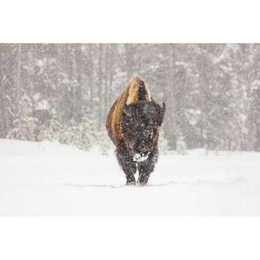 Bull Bison during a Snow Storm, Yellowstone National Park Gold Ornate Wood Framed Art Print with Double Matting by Frank, Jacob W.
