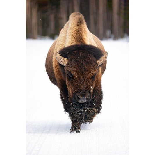 Bull Bison on a Winter Day, Yellowstone National Park Gold Ornate Wood Framed Art Print with Double Matting by The Yellowstone Collection