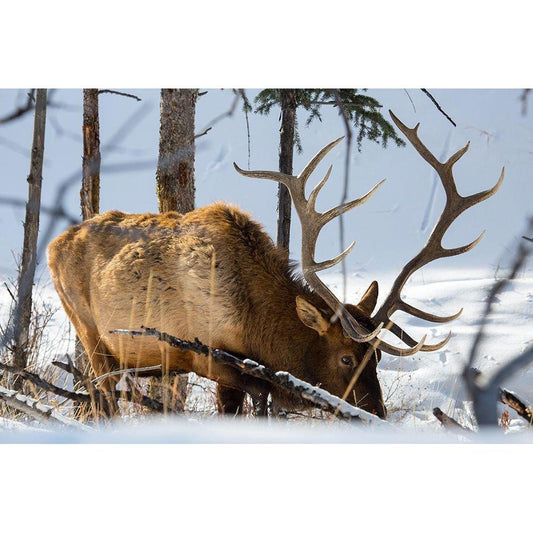 Bull Elk Grazing in Mammoth Hot Springs, Yellowstone National Park Gold Ornate Wood Framed Art Print with Double Matting by The Yellowstone Collection