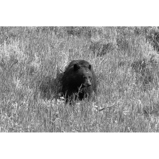 Black Bear in Lamar Valley, Yellowstone National Park Gold Ornate Wood Framed Art Print with Double Matting by The Yellowstone Collection