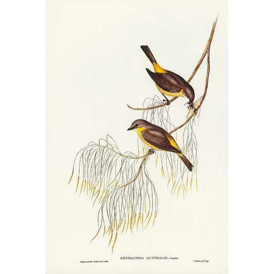 Yellow-breasted Robin-Eopsaltria Australis Gold Ornate Wood Framed Art Print with Double Matting by Gould, John