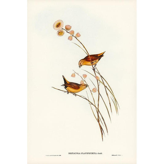 Yellow-rumped Finch-Donacola flaviprymna Gold Ornate Wood Framed Art Print with Double Matting by Gould, John
