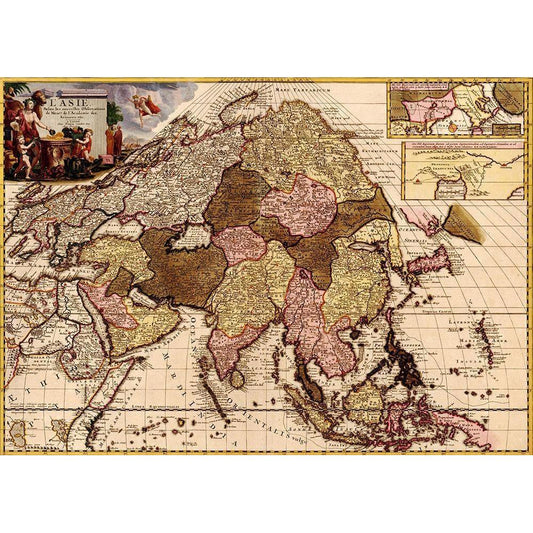 Asia 1680 Gold Ornate Wood Framed Art Print with Double Matting by Vintage Maps