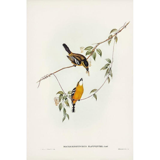 Yellow-breasted Flycatcher-Machaerirhynchus flaviventer Gold Ornate Wood Framed Art Print with Double Matting by Gould, John