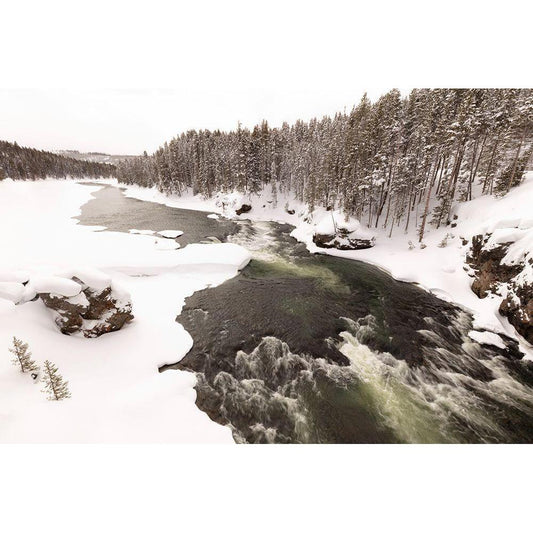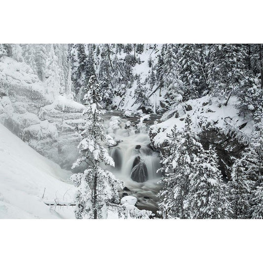 Winter at Firehole Falls, Yellowstone National Park Gold Ornate Wood Framed Art Print with Double Matting by The Yellowstone Collection