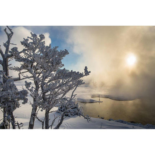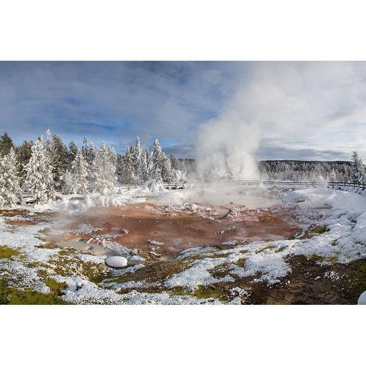 Winter at Fountain Paint Pot, Yellowstone National Park Gold Ornate Wood Framed Art Print with Double Matting by The Yellowstone Collection
