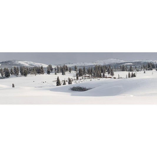 Winter Panorama, Blacktail Deer Plateau, Yellowstone National Park Gold Ornate Wood Framed Art Print with Double Matting by The Yellowstone Collection