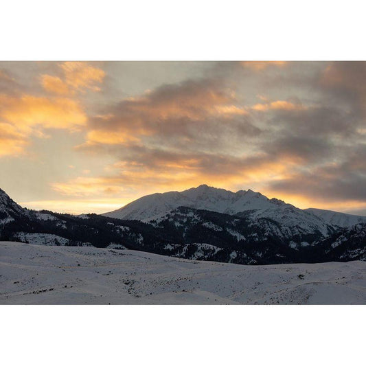 Winter Sunset over Electric Peak, Yellowstone National Park Gold Ornate Wood Framed Art Print with Double Matting by The Yellowstone Collection