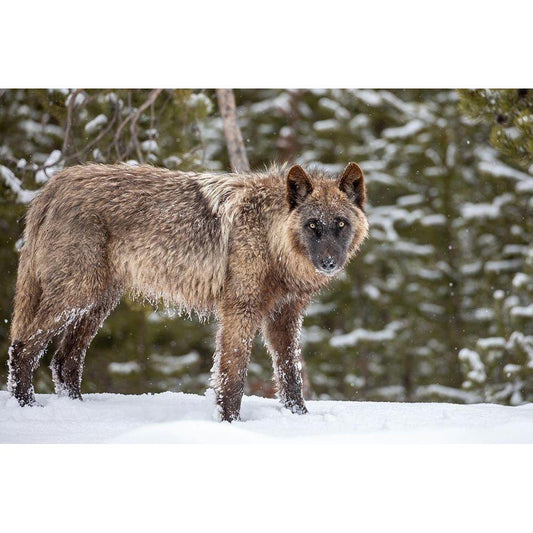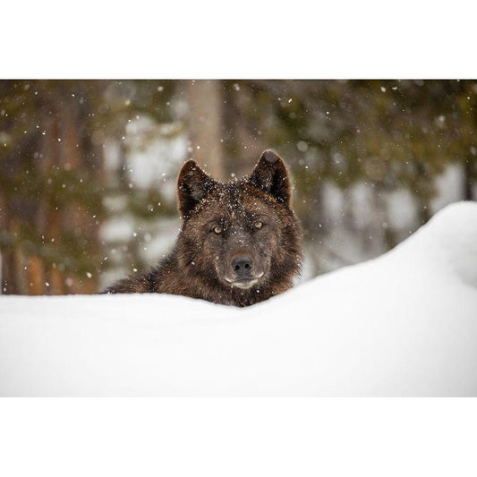 Wolf in Snow, Yellowstone National Park Gold Ornate Wood Framed Art Print with Double Matting by The Yellowstone Collection