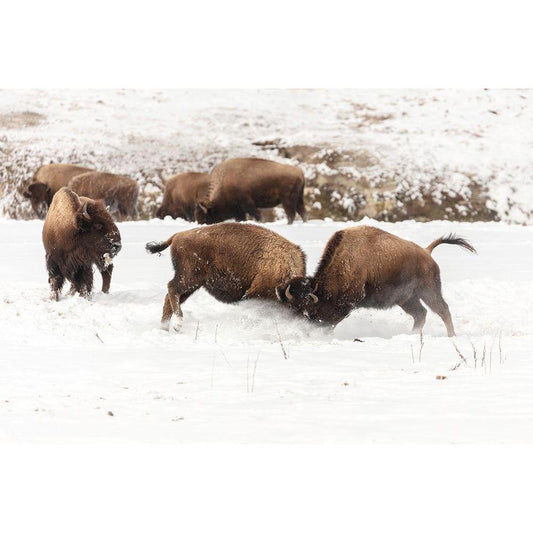 Young Bison Spar along the Firehole River, Yellowstone National Park Gold Ornate Wood Framed Art Print with Double Matting by Frank, Jacob W.