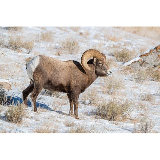 Large Bighorn Ram grazing in meadow-National elk Reserve near Grand Teton National Park-Wyoming Gold Ornate Wood Framed Art Print with Double Matting by Garber, Howie
