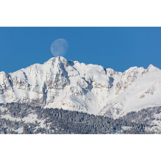 The Moon over Electric Peak, Yellowstone National Park Gold Ornate Wood Framed Art Print with Double Matting by The Yellowstone Collection
