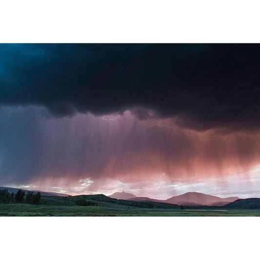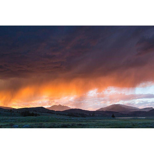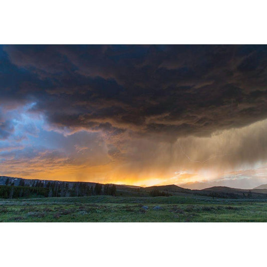 Thunderstorm at Sunset, Swan Lake Flat, Yellowstone National Park Gold Ornate Wood Framed Art Print with Double Matting by The Yellowstone Collection