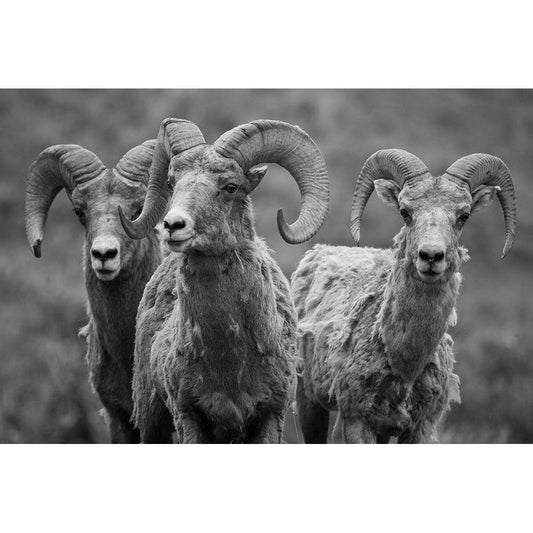 Trio of Bighorn Rams, Lamar Valley, Yellowstone National Park Gold Ornate Wood Framed Art Print with Double Matting by The Yellowstone Collection