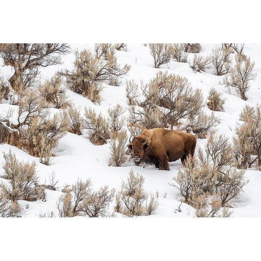 USA- Wyoming- Yellowstone National Park. Bison in falling snow. Gold Ornate Wood Framed Art Print with Double Matting by Jaynes Gallery