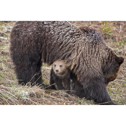 Wyoming-Yellowstone National Park Grizzly bear cub sheltering under mother Gold Ornate Wood Framed Art Print with Double Matting by Jaynes Gallery