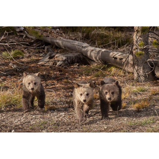 Wyoming-Yellowstone National Park Three grizzly bear cubs Gold Ornate Wood Framed Art Print with Double Matting by Jaynes Gallery