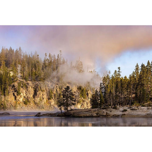 Morning mist on Yellowstone River-Yellowstone National Park-Wyoming Gold Ornate Wood Framed Art Print with Double Matting by Jones, Adam