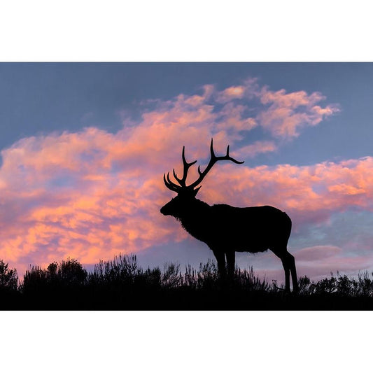 Bull elk or wapiti silhouetted on ridge top-Yellowstone National Park-Wyoming Gold Ornate Wood Framed Art Print with Double Matting by Jones, Adam