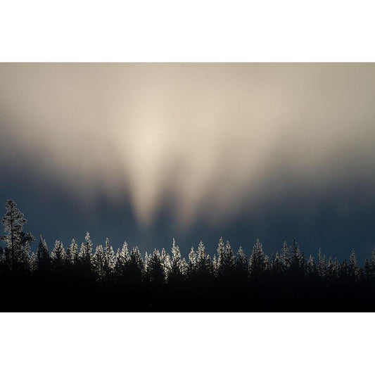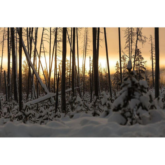 Sunrise through the lodgepole pine, Yellowstone National Park Gold Ornate Wood Framed Art Print with Double Matting by The Yellowstone Collection