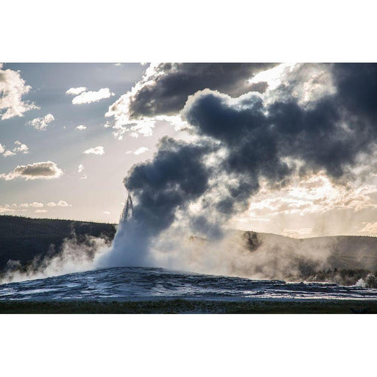 Sunset eruption of Old Faithful, Yellowstone National Park Gold Ornate Wood Framed Art Print with Double Matting by The Yellowstone Collection