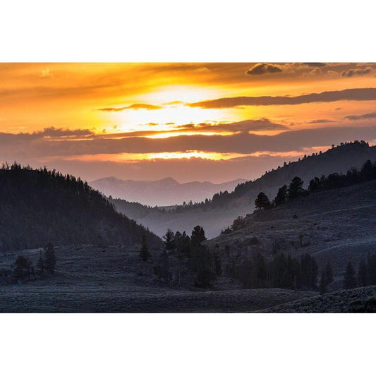 Sunset, Lamar Valley, Yellowstone National Park Gold Ornate Wood Framed Art Print with Double Matting by The Yellowstone Collection