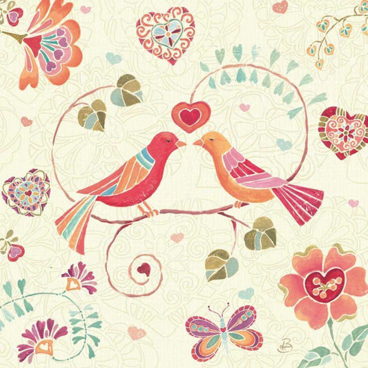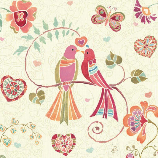 Birds in Spring II Square Gold Ornate Wood Framed Art Print with Double Matting by Prahl, Courtney