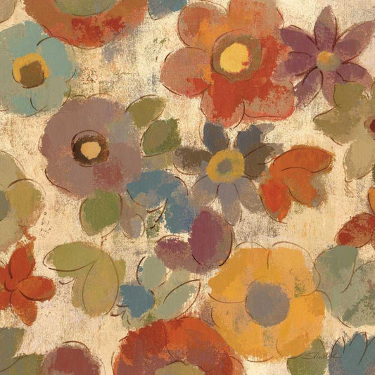 Poppies and Pansies I Gold Ornate Wood Framed Art Print with Double Matting by Novak, Shirley