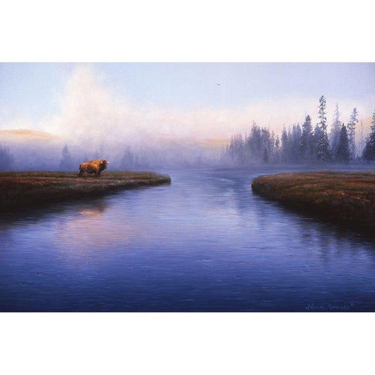 Yellowstone Mist Gold Ornate Wood Framed Art Print with Double Matting by Manocchia, Adriano