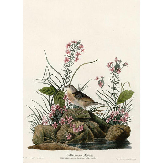 Yellow Winged Sparrow Gold Ornate Wood Framed Art Print with Double Matting by Vintage Apple Collection