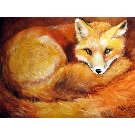 Little Red Fox Gold Ornate Wood Framed Art Print with Double Matting by Baldwin, Marcia