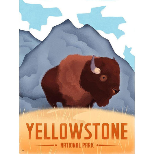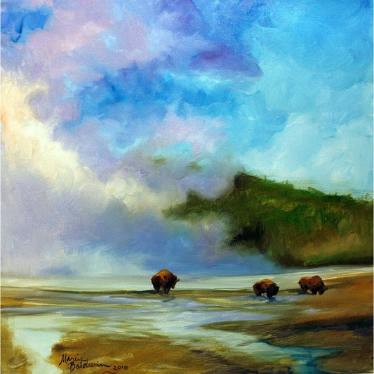 Yellowstone Buffalo Landscape Gold Ornate Wood Framed Art Print with Double Matting by Baldwin, Marcia