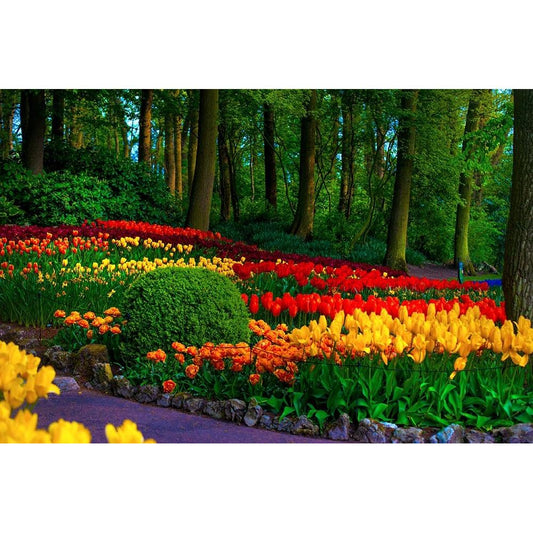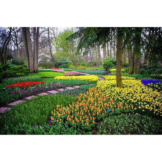 Colorful Corner Keukenhof Tulips Garden 1 Gold Ornate Wood Framed Art Print with Double Matting by Jenny Rainbow Fine Art