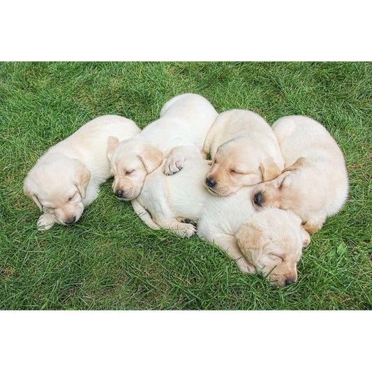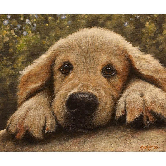 Dog Lab Puppy Sleeping Gold Ornate Wood Framed Art Print with Double Matting by Schell, Jennie Marie