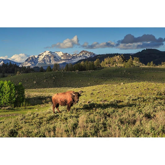 Bison With Mountains (YNP) Gold Ornate Wood Framed Art Print with Double Matting by Galloimages Online