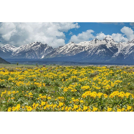 Wild Flowers With Mountains (YNP) Gold Ornate Wood Framed Art Print with Double Matting by Galloimages Online