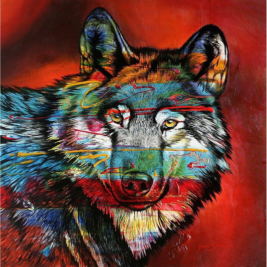 Electric Wolf Gold Ornate Wood Framed Art Print with Double Matting by Stevenson, Graeme