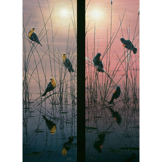Morning Call - Yellow Headed Blackbirds Gold Ornate Wood Framed Art Print with Double Matting by Tift, Jeff