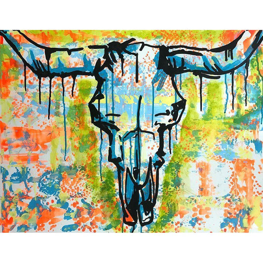 Bull Skull Gold Ornate Wood Framed Art Print with Double Matting by Dean Russo Collection