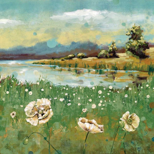 Emerald Meadow I Gold Ornate Wood Framed Art Print with Double Matting by Wacaster, Linda
