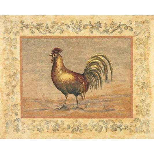 Rooster Gold Ornate Wood Framed Art Print with Double Matting by Schippel, Banafshe